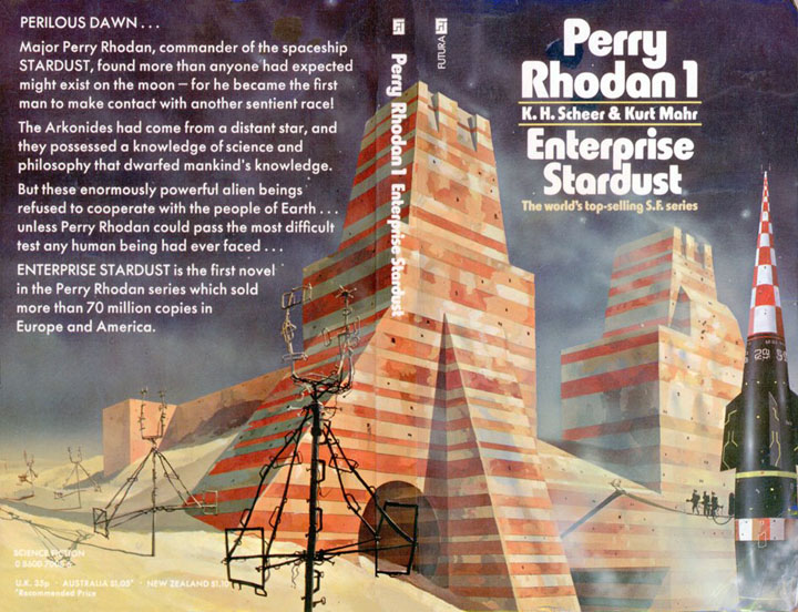 Perry Rhodan 1: Enterprise Stardust. Orbit-Futura: London, 1974. ISBN 0-8600-7008-5 – Titelbildzeichner: Chris Foss