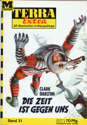 Clark Darlton: »Die Zeit ist gegen uns«. TERRA Extra Band 31. Moewig-Verlag, 8. November 1963 – Zeichner: Johnny Bruck
